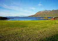 andre siden av Vågen. Fjellet Toppen i bakgrunnen