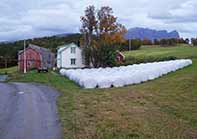 nede i Gården. Den gamle bygningen med rundballer